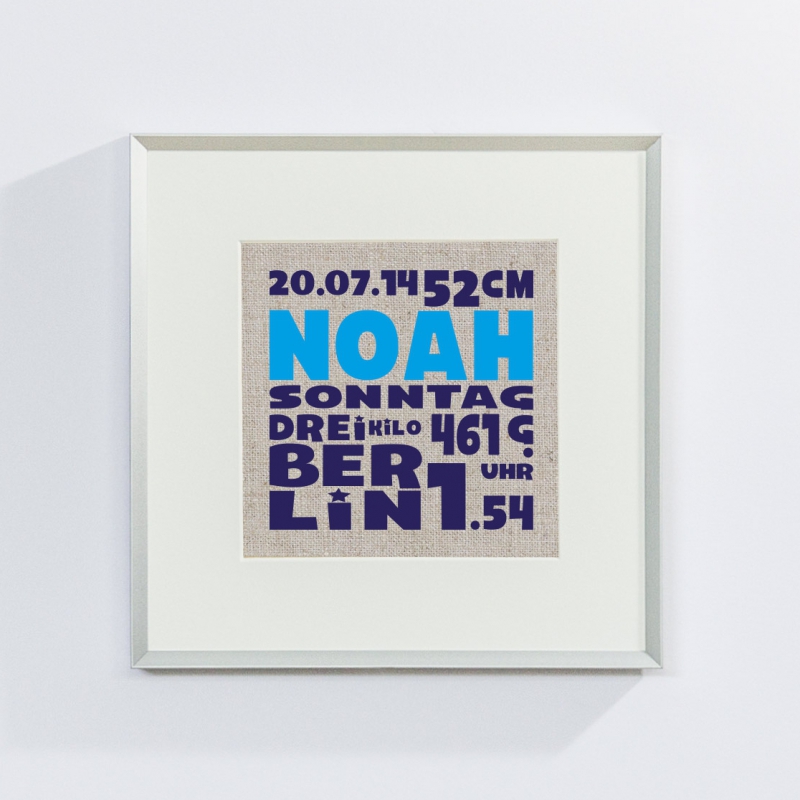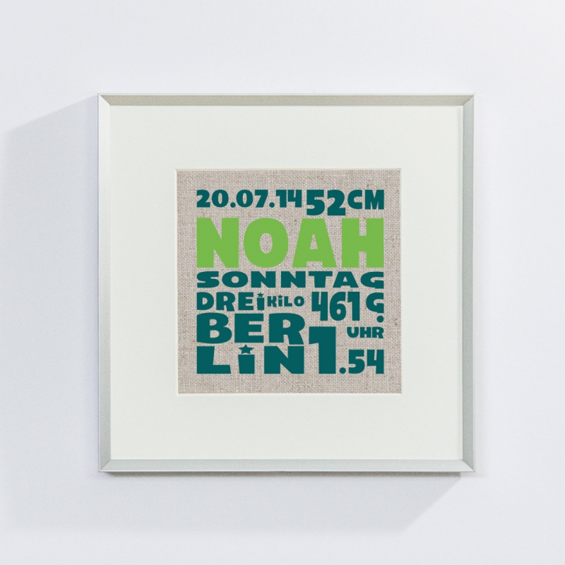 Das Design wird mit den Geburtsdaten des Kindes individualisiert.